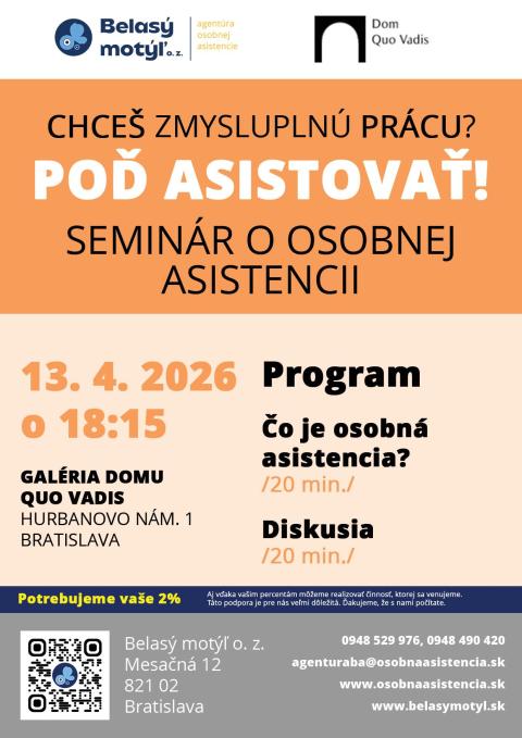 Pozývame Vás na Informačný seminár o osobnej asistencii, ktorý organizuje Belasý motýľ o. z. – Agentúra osobnej asistencie a QUO VADIS
