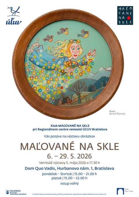 Maľované na skle je aj názov našej výstavy. Nadšenie pre túto techniku a chuť tvoriť viedli klubistov k tomu, aby výsledky svojej práce po prvýkrát predstavili verejnosti práve tu, v Dome Quo Vadis. Výstava je prejavom úcty k tradícii aj radosti z objavovania nových možností v rámci starého remesla, kde sa za každou tabuľkou skla ukrýva iný príbeh, iný rukopis a osobitá poetika. Súčasní autori experimentujú s farbou, kompozíciou aj výrazom a posúvajú hranice tejto techniky ďalej. Veríme, že energia, ktorú vložili do svojich diel, osloví aj vás.